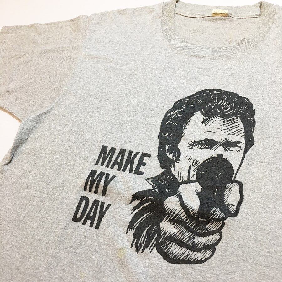 80年代のSCREEN STARS社製、映画''Dirty Harry4'' の劇中のセリフ、''MAKE MY DAY'' がフロントにプリントされたTシャツです。