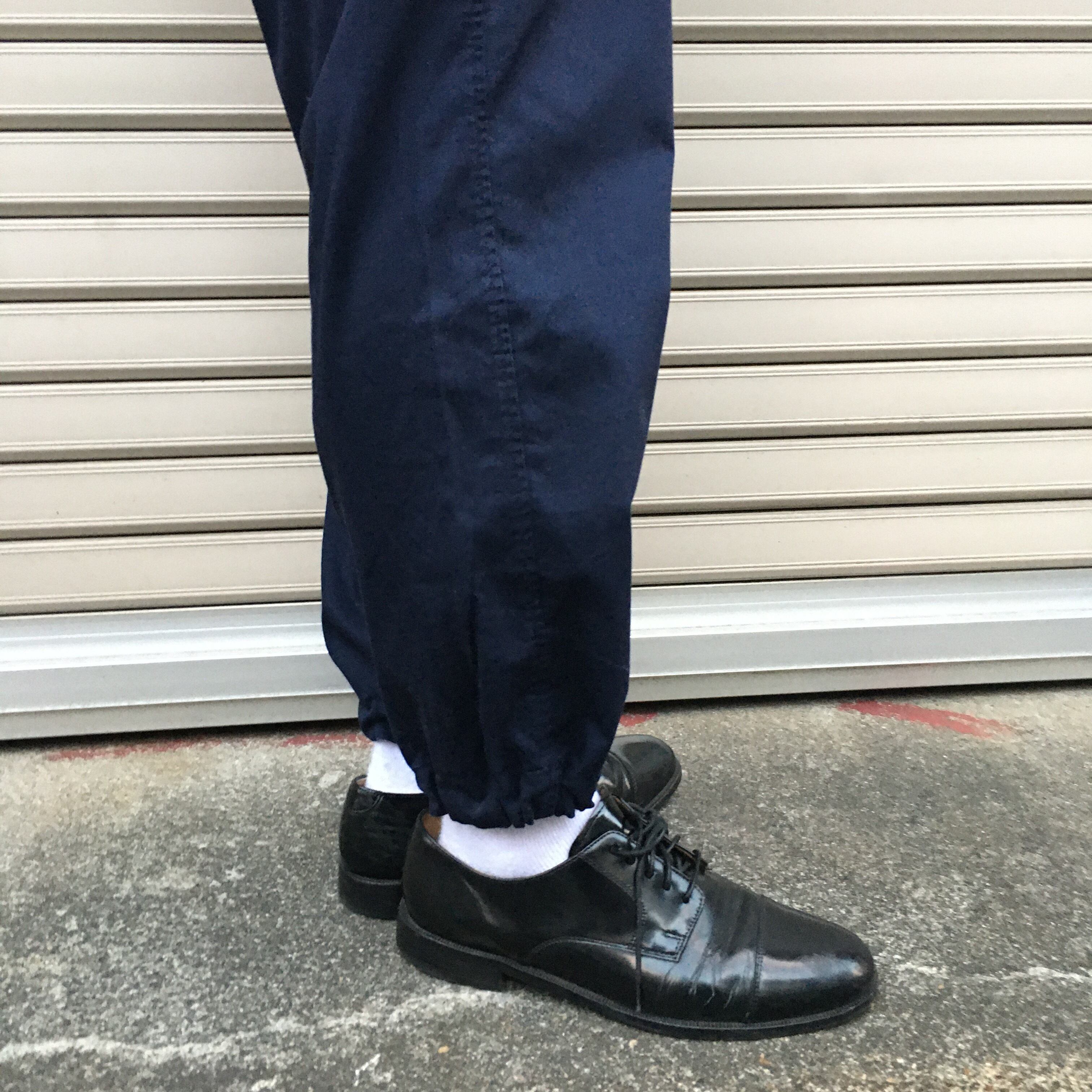 潜水艦などで採用されていた物で、少しゆとりのあるワタリに、ひざ下からのテーパードシルエット