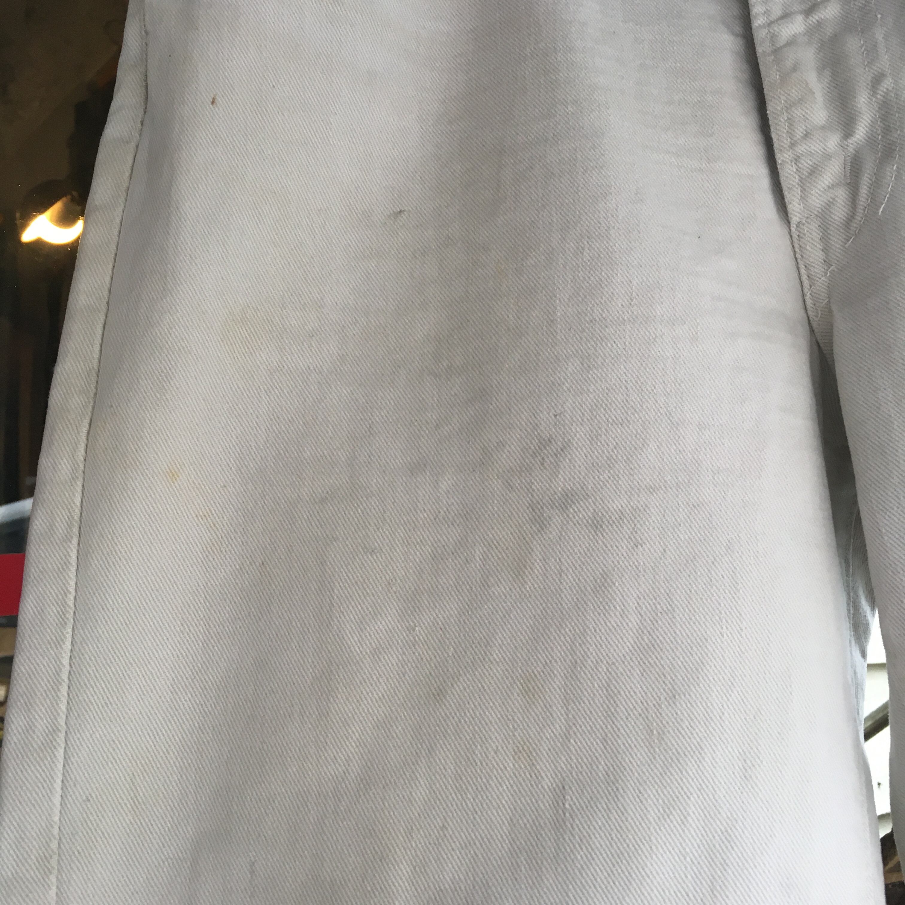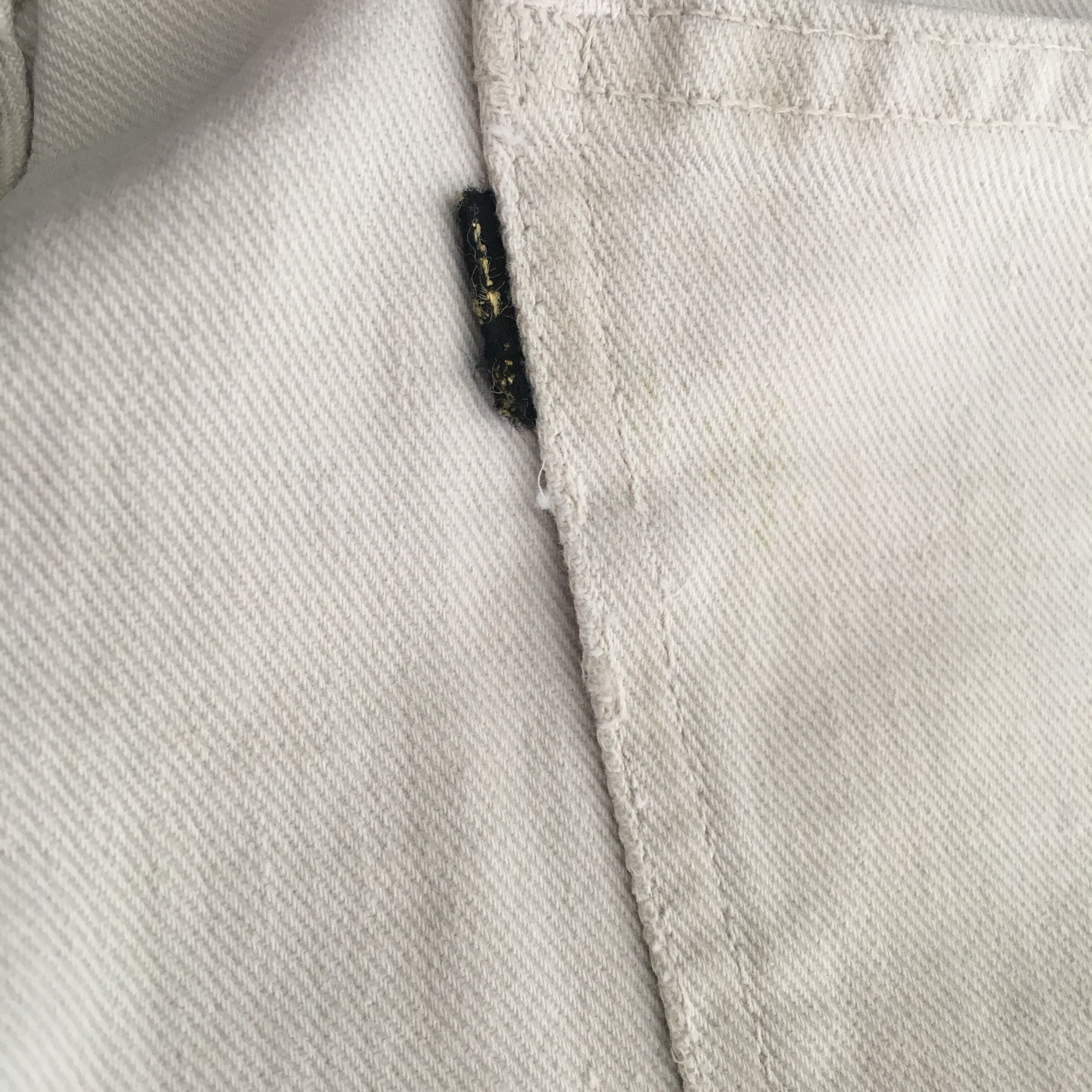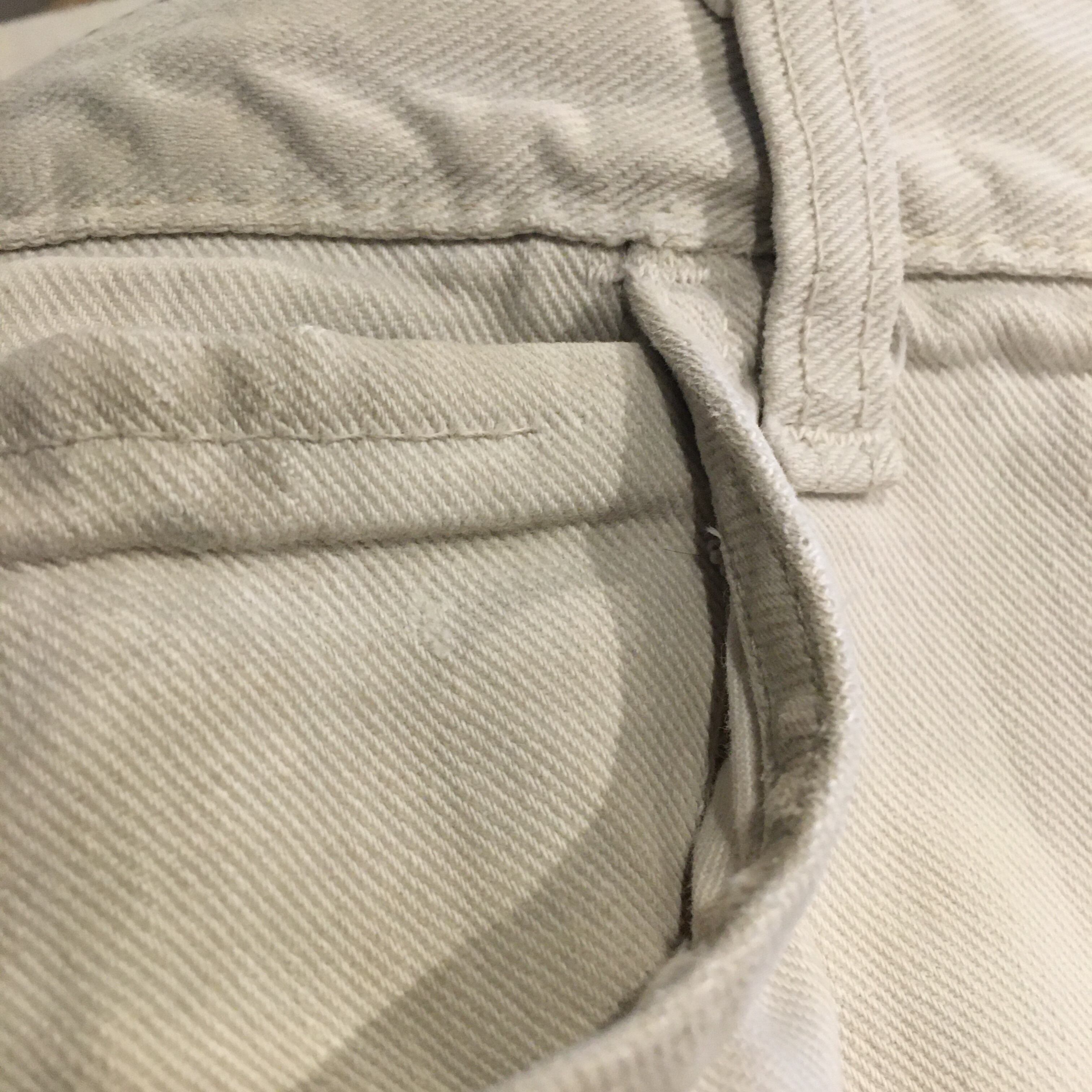 バックポケット、コインポケットステッチ抜け、薄いシミ、汚れが前後にあります。