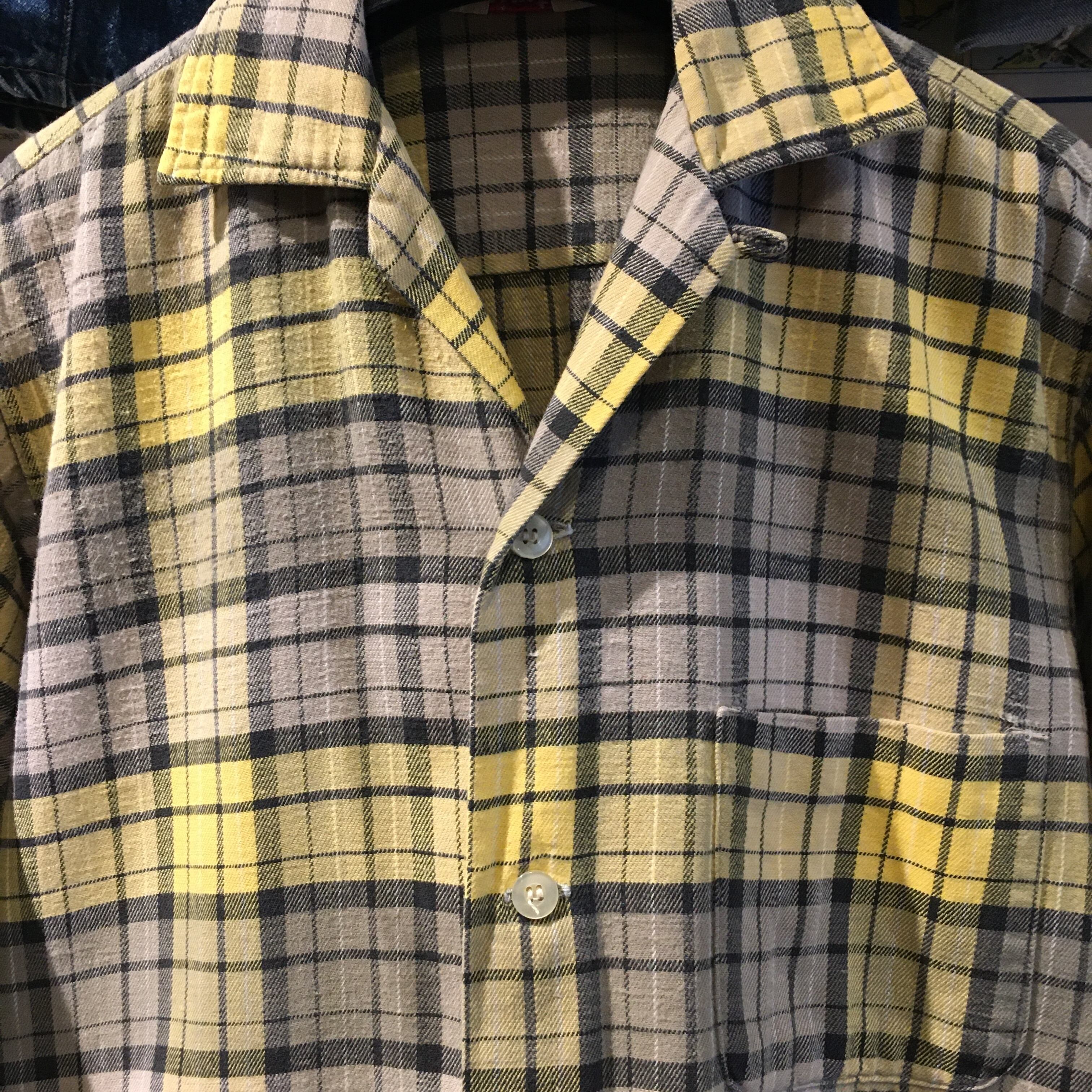 60年代頃の、ネル生地のオープンカラーシャツ