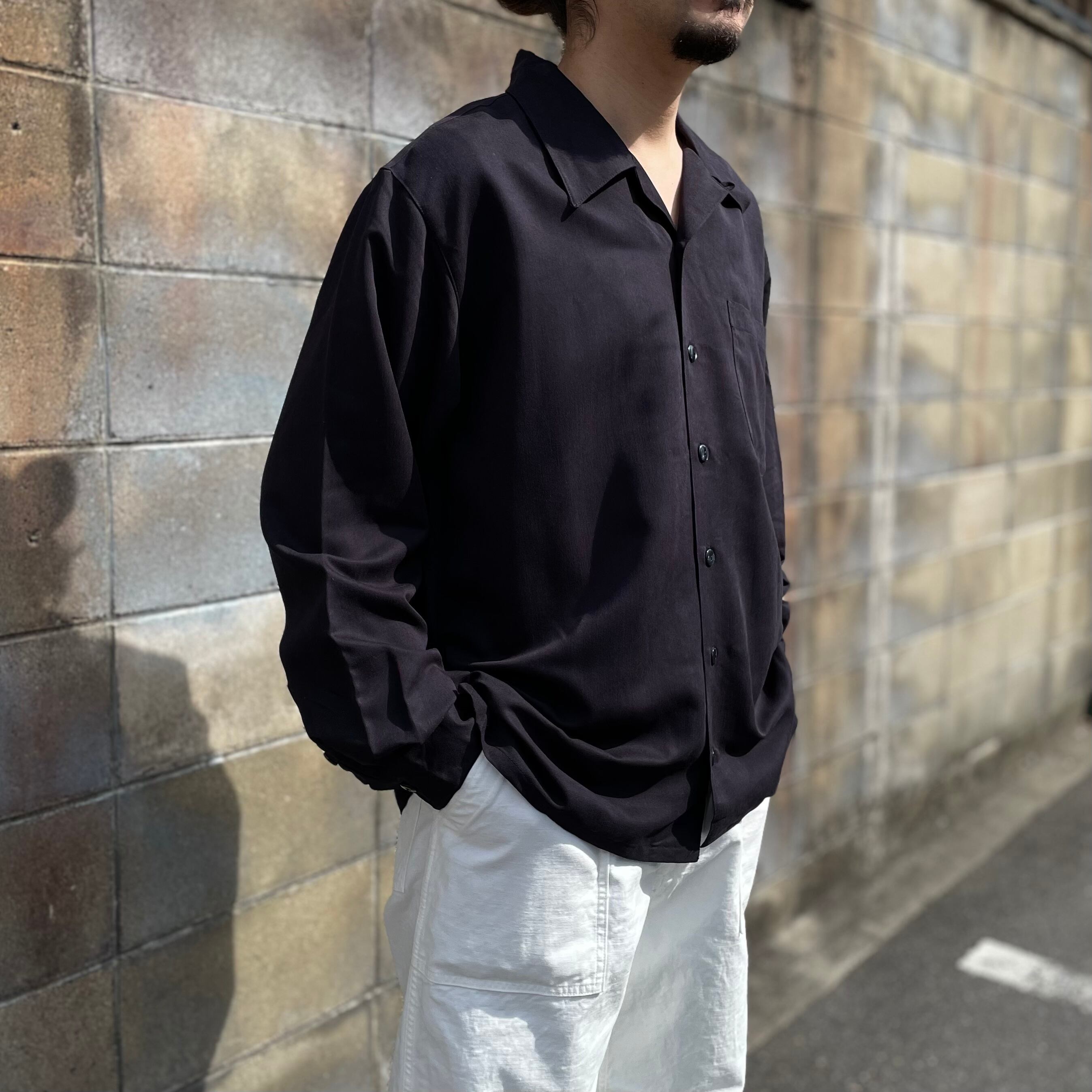 80s~ Dead Stock Black Rayon Shirt